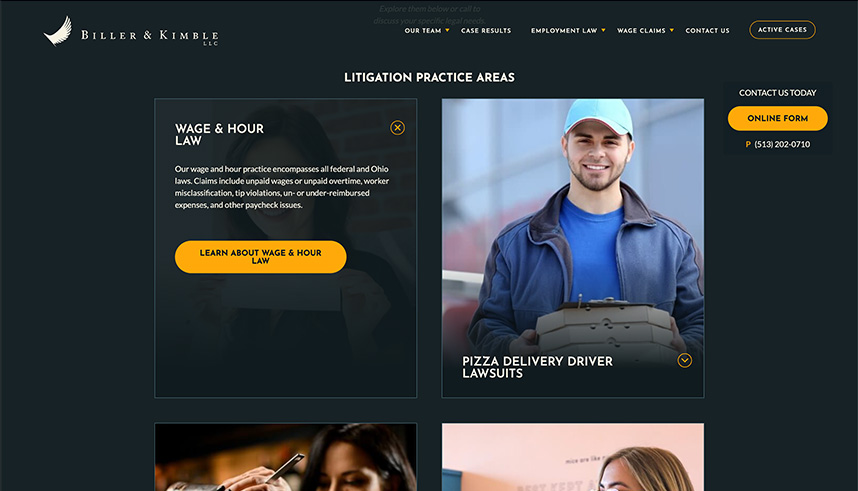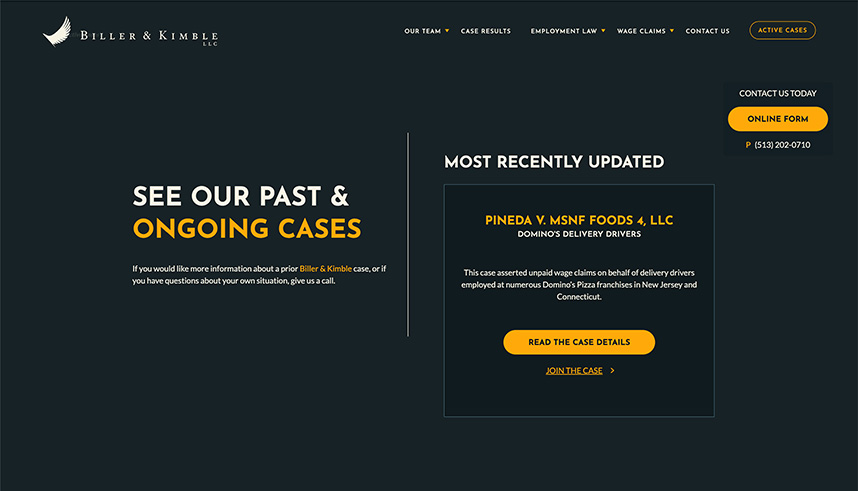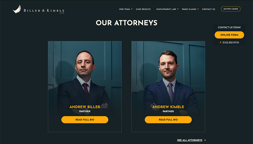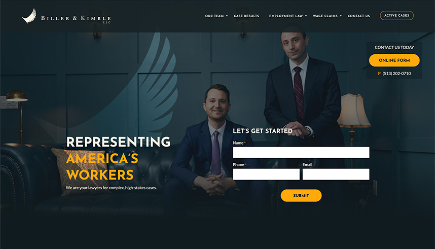 Biller & Kimble, LLC is a firm defined by directness, grit, and an unwavering commitment to people over institutions. In building their new site, they wanted to preserve their no-nonsense identity while elevating their reach: a professional, sleek platform projecting authority, empathy, and impacting cases nationwide.
