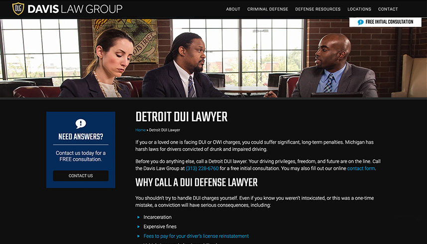 Davis Law Group PLLC is a Detroit-based criminal defense firm defending clients across Michigan in the toughest criminal cases. Seeking more than a standard site, the firm embraced a bold rebrand by launching a high-powered digital strategy and striking website that cuts through the noise, elevates authority, and drives measurable growth in Detroit’s competitive legal landscape.