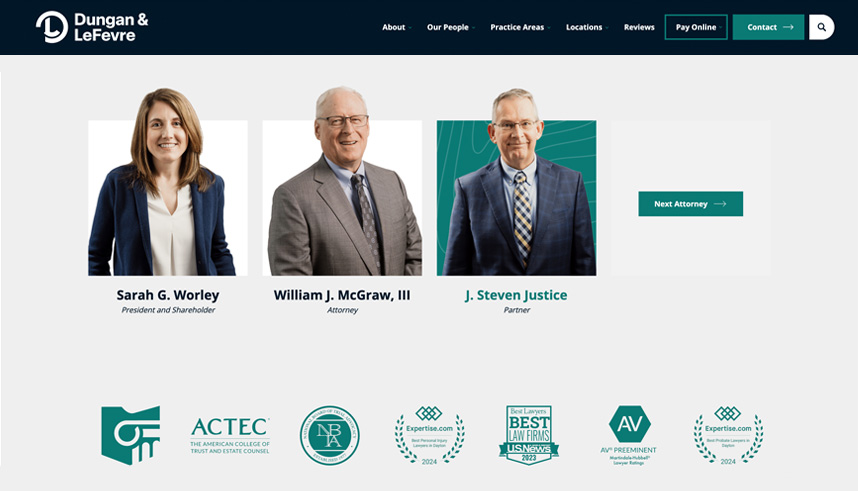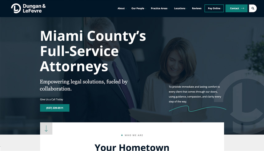 Dungan & LeFevre Co., LPA is a full-service law firm grounded in integrity, client service, and community values, offering trusted counsel in civil litigation and criminal defense. Their redesigned website delivers a fresh, modern aesthetic and seamless usability while honoring tradition – projecting professionalism, approachability, and the enduring relationships that define the firm’s role in the community.
